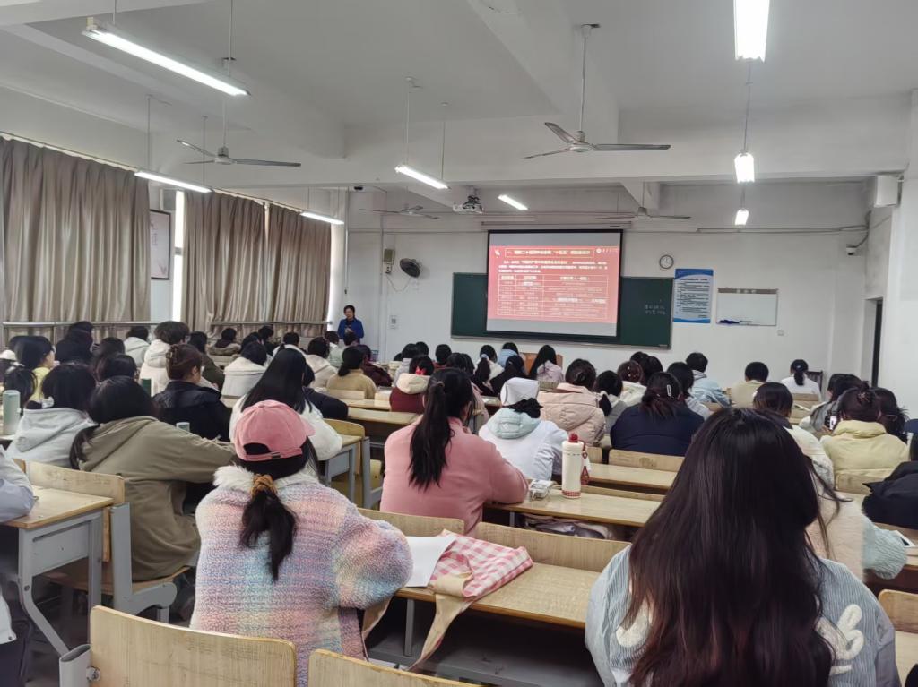 党课围绕全会精神核心,结合青年成长规律,针对全会提出的“十五五”时期“科技自立自强水平大幅提高”“高质量发展取得显著成效”等目标进行了重点阐释。陈敏强调,全会审议通过的“十五五”规划建议,不仅擘画了国家发展蓝图,更为青年一代指明了成长方向。她对教师党员提出,要将全会精神融入教学设计,在专业教学中强化价值引领。她鼓励员工党员积极发挥先锋模范作用,带动身边同学形成“比学赶超”的良好学风,员工党员要在学业竞赛、社会实践中争先锋,以实绩彰显党员本色。