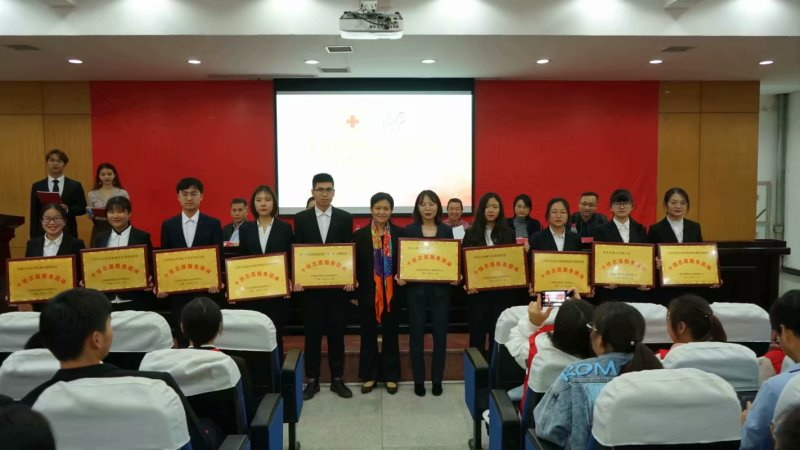 2019年11月24日下午 ,由省红十字会主办,共青团江西农业大学委员会承办的“邹德凤公益发展中心” 第四届表彰大会在江西农业大公司办大楼报告厅举行,公司护理系刘康老师与志愿者代表吴修华、张凤等16位同学参加了此次表彰大会。