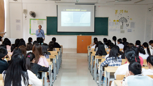 张老师为同学们介绍国家对大学就业创业的政策,分析了未来五年商业的格局变化。并举例马云、“三只松鼠”电商老总创业的例子,鼓励同学开拓思维,万众创新,大众创业。同时,张老师也结合我系同学实际情况,提出医疗健康服务行业向“互联网+”转型的观点,如网上挂号预约、医疗服务远程诊断、医疗大数据的运用、出境医疗网上预约服务等。