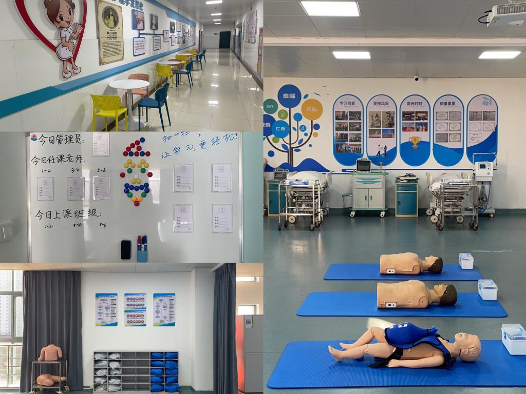 现场急救室能够满足院前急救、灾难救护及院内急诊科救护三种救护场景的教学需求,是省内一流的急救护理实训基地。实训室内配备了各种CPR模拟人、除颤仪、各种包扎模型、场景式急救系统、场景融合系统、配备气道异物冲击清除套装、现场综合急救包等各种急救训练设备,通过模拟真实临床环境,将知识、技能、态度融合,突破传统的“文化课—专业基础课—专业课—技能训练”的教学模式框架,采用理论结合实际,以项目为载体,以实训为手段,融“教、学、做”为一体的“理实一体化”教学模式,帮助员工更好地适应临床工作,提高处理复杂实际问题的能力并提高职业素养,为日后走上工作岗位打下坚实的基础。
