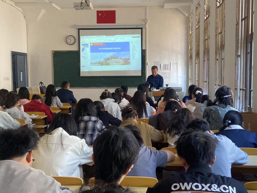 为进一步落实实习工作,2025年3月25日上午,BB贝博艾弗森召集2023级高职护理6个班在青山湖校区开展了护理线上线下相结合的实习动员大会。出席本次大会的有教务处实习实践科科长王向东、学工处科长沈林、公司党委委员黄兰、BB贝博艾弗森实习干事刘思、23级高护班辅导员及全体员工。