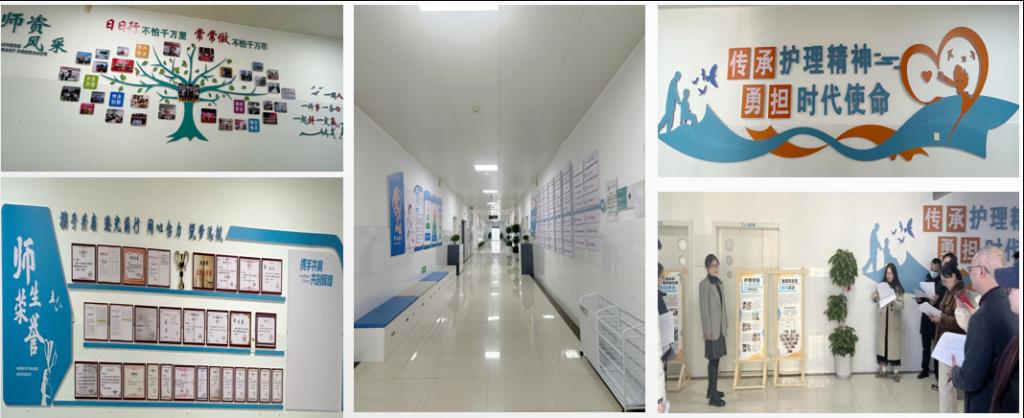 五楼廊道以“以专业,致健康”的设计理念,利用图文并茂的形式,展示现代护理技术、设备及应用案例,展现学科发展历史与传承,提升员工对专业前沿知识的认识。同时紧跟护教协同,创新发展的主题,加强临床实践与课堂教学的融合,展现护理学科发展新方向。