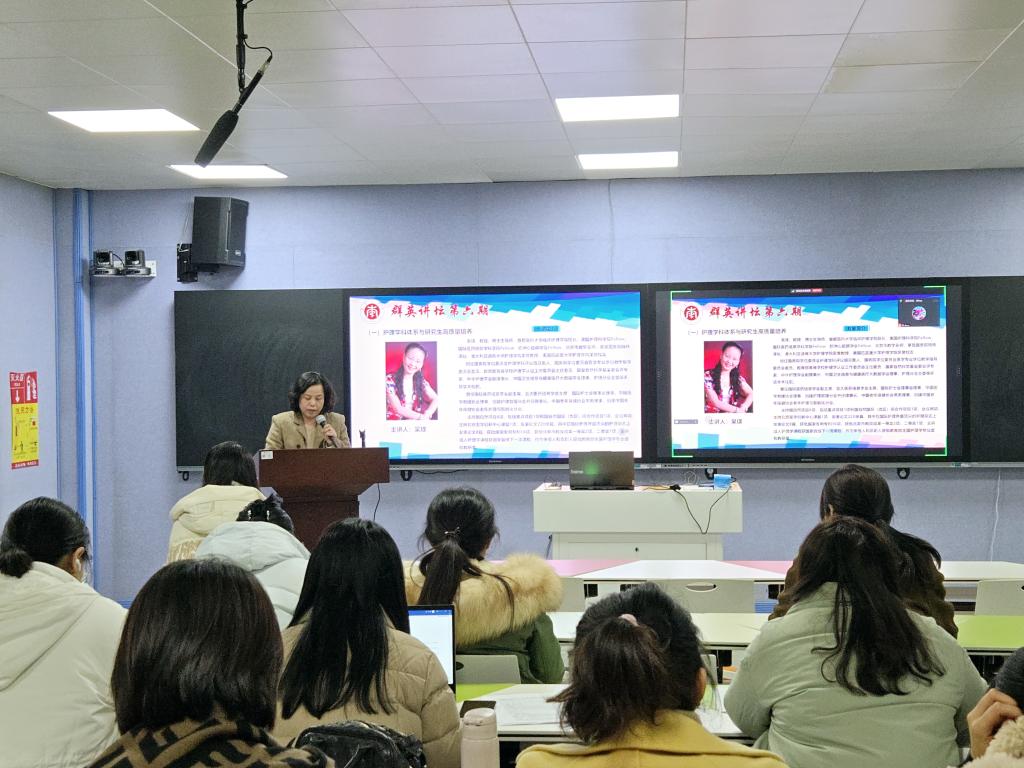 2024年12月13日上午,第六期“群英讲坛”学术讲座在BB贝博艾弗森1号实训楼411智慧教室顺利举行。本次讲座特邀首都医科大学临床BB贝博艾弗森经理吴瑛教授、第二军医大学BB贝博艾弗森周兰姝教授作专题报告。BB贝博艾弗森和附属医院师生线上线下共计200余人参加学习。讲座由BB贝博艾弗森副经理胡颖辉主持。